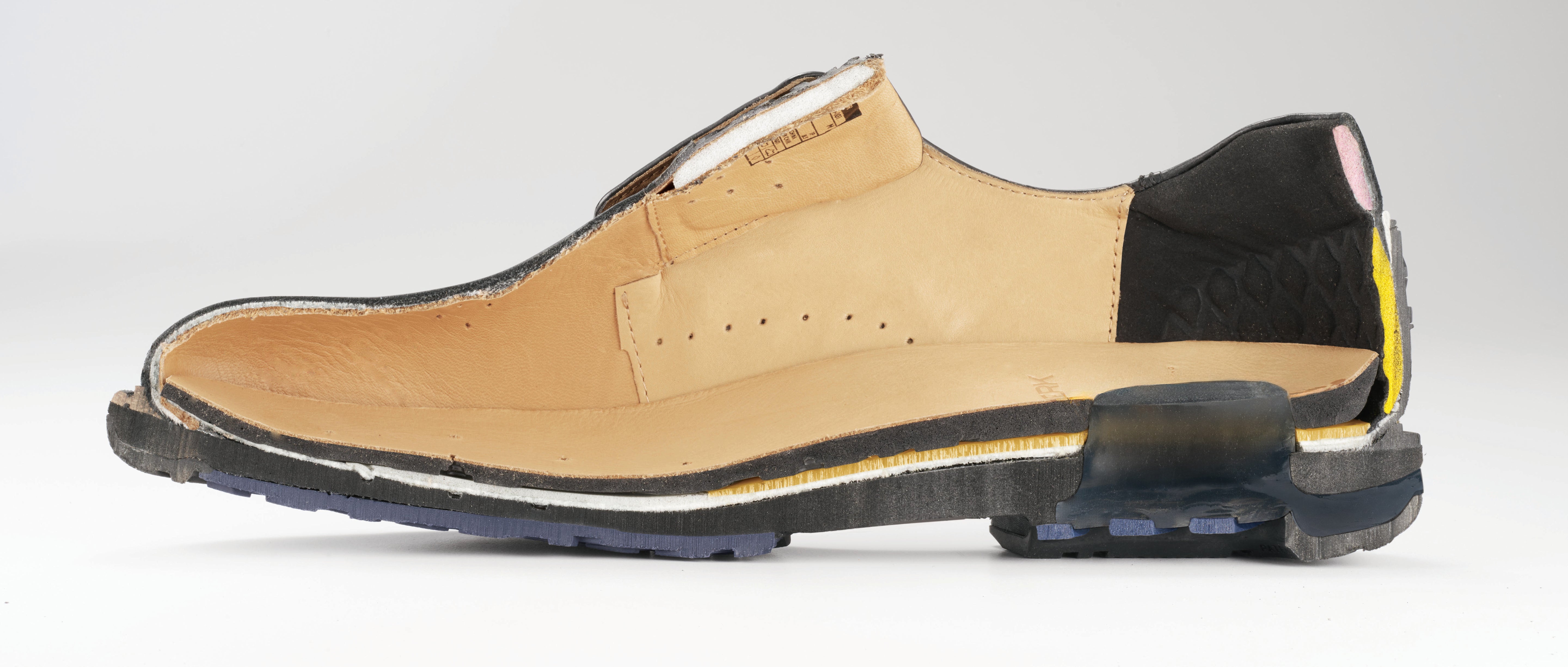 Is our multi-layered patent pending gel platform developed for supreme cushioning and durability. This unique cushioning system allows the gel component of the heel to protrude through the midsole allowing your foot to sit directly on the cushioning gel platform.